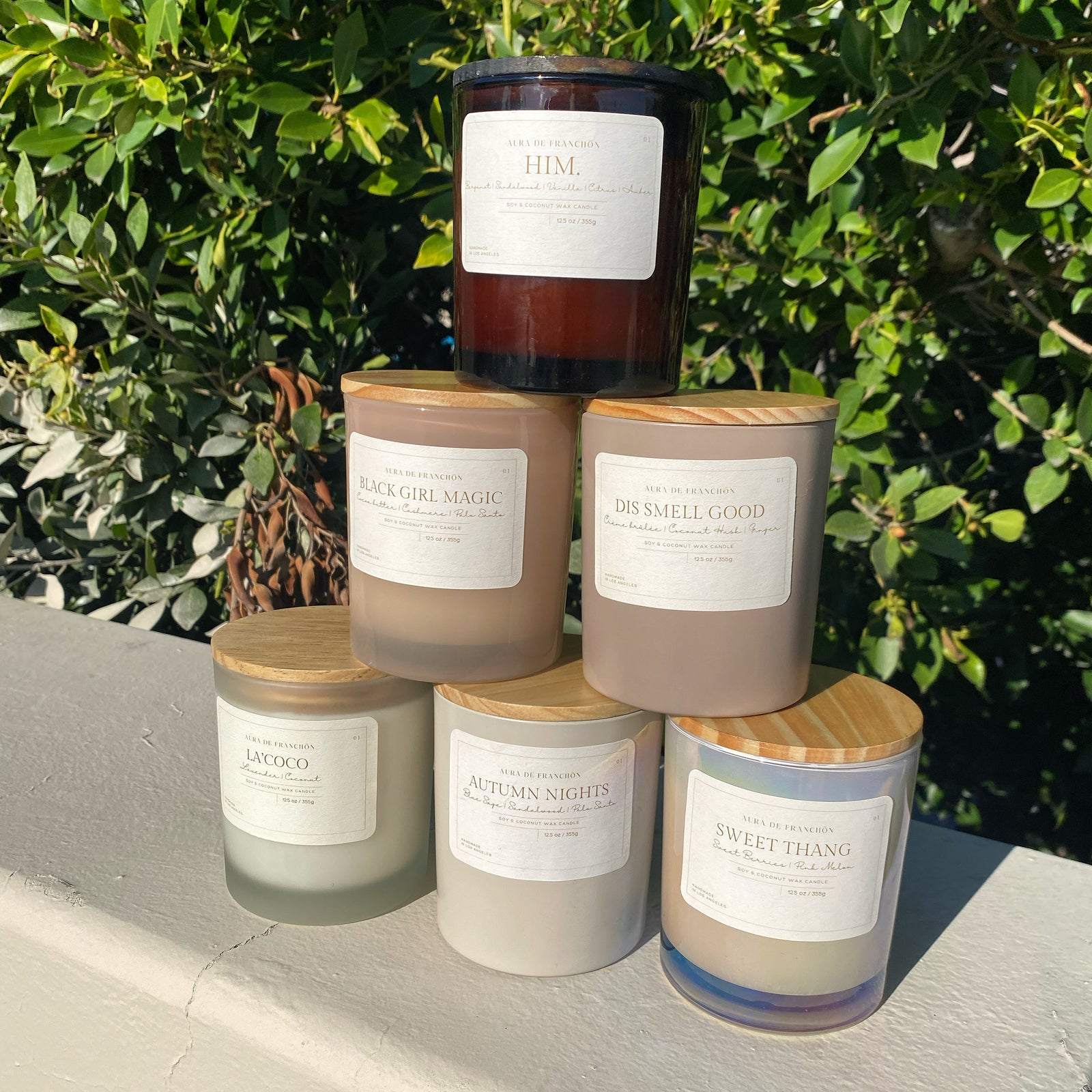 All of Aura de Franchon candles are made with 100% premium soy wax. Our candles are handcrafted with care to elevate your ambiance while respecting the environment and your health. We take pride in using high-end fragrances that evoke a sense of luxury and sophistication.